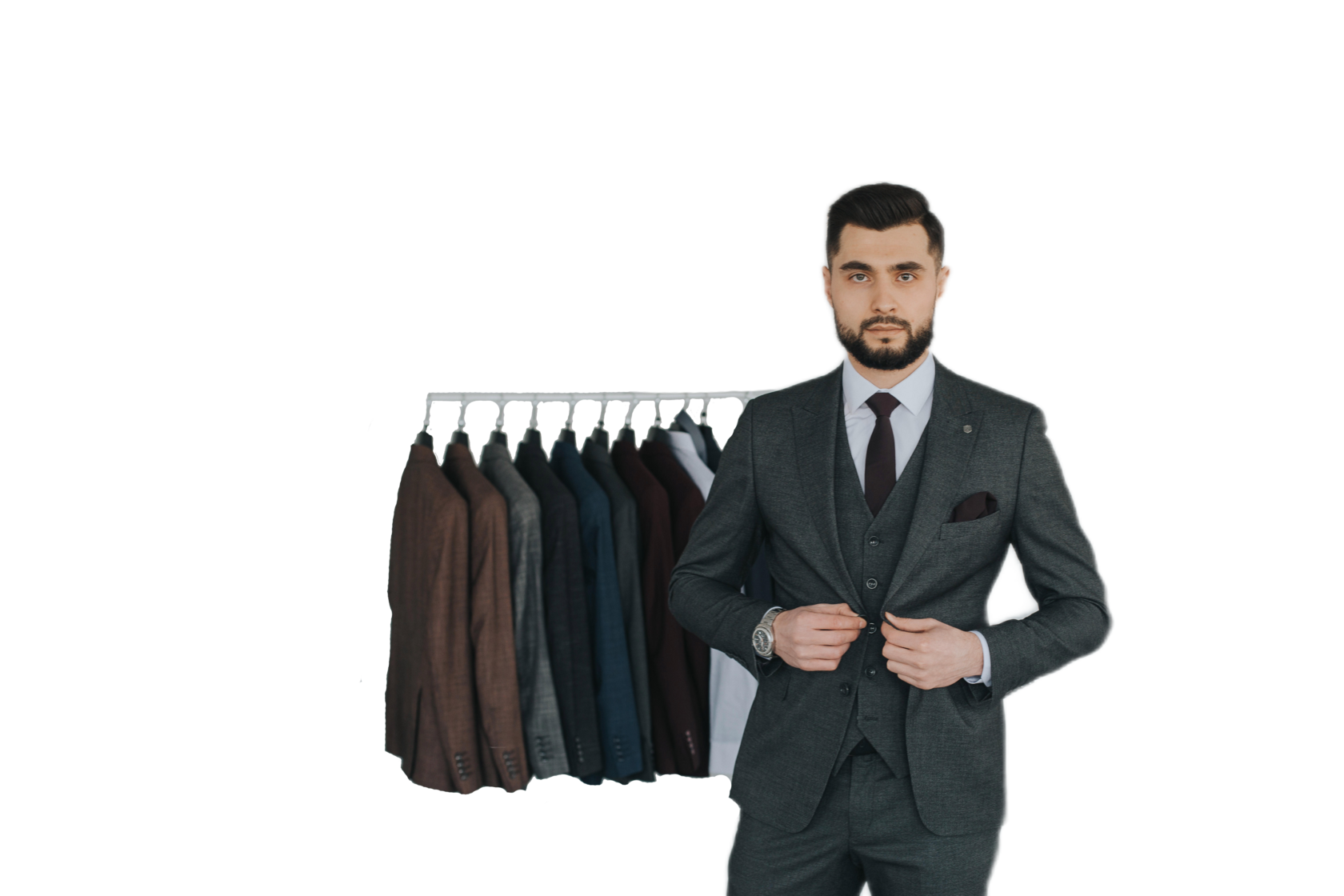Каждому покупателю стилисты подбирают индивидуальный образ из 1000 уже готовых костюмов, с обувью и соответствующими аксессуарами. Любой костюм бесплатно подгоняется под фигуру нашим профессиональным ателье. В результате он всегда сидит прекрасно вне зависимости от индивидуальных особенностей.